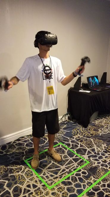 Client Requirements: Enough room to setup 1 or 2 six foot tables (or use your own tables) within close proximity to power outlet, an internet connection (if playing online games) and minimum space of 10 x 6 foot area of play for VR. *Internet Connection required for online games and client must provide wireless or wired connection. We can provide cabling as needed for wired connections with advance notice. **Price does not include tax